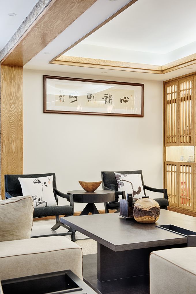 通过与业主的沟通,本次别墅作品根据业主年龄以及喜好要求,定位为实木日式禅意空间,干净清爽,落落大方。 作品整体富有日式禅意风,通过实木及挂画营造干净轻松的环境氛围,给业主更好的住家体验。通过现场测量及考察把原本只有一层的房子土建改造为了两层,不仅增大了使用面积,更增加了空间舒适度。合理利用梁 柱区分空间使用功能,并且开窗及门洞,增大采光,有舒适的客厅 ,宽大的厨房 ,还有极具风格的茶室,合理的布置的各个空间都给人轻松舒适感。